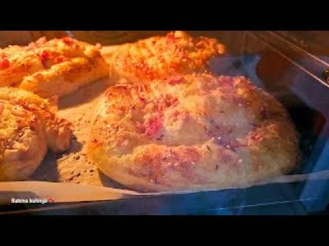 Добро и за појадок и за вечера СОСТОЈКИ : 500 гр тенки кори 100 гр сирење 200 мл јогурт 1 лажица гриз 3 јајца 1/2 прашок за пециво 100 гр шунка + 50 гр 30 мл ...