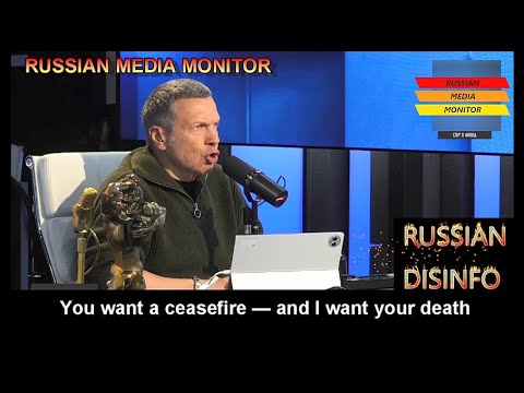 Рускиот пропагандист Владимир Соловјов во својата емисија на „Росија 1“ изјави дека „европските свињи“ и Холи (навредливо име за Украинците) сакаат примирје, ...