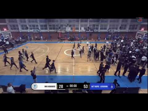 Домашните фанови незадоволни од играта на своите кошаркари и резултатот кој тогаш беше 53-28 за МЗТ Скопје, влегоа во теренот.Беа најразочарани од српскиот ...