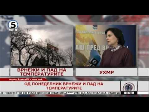 Утринската температура ќе се движи од два до девет, а дневната од четири до 12 степени. Во Скопје облачно со врнежи од дожд. Ќе дува умерен ветер од ...